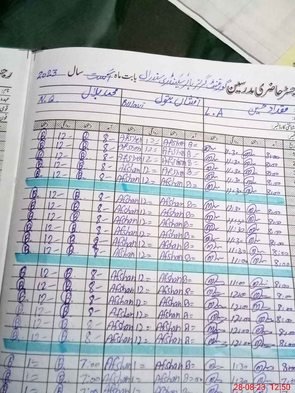 | CNIC | Full Name | Designation | R/C | Absence During Last Calender Month |