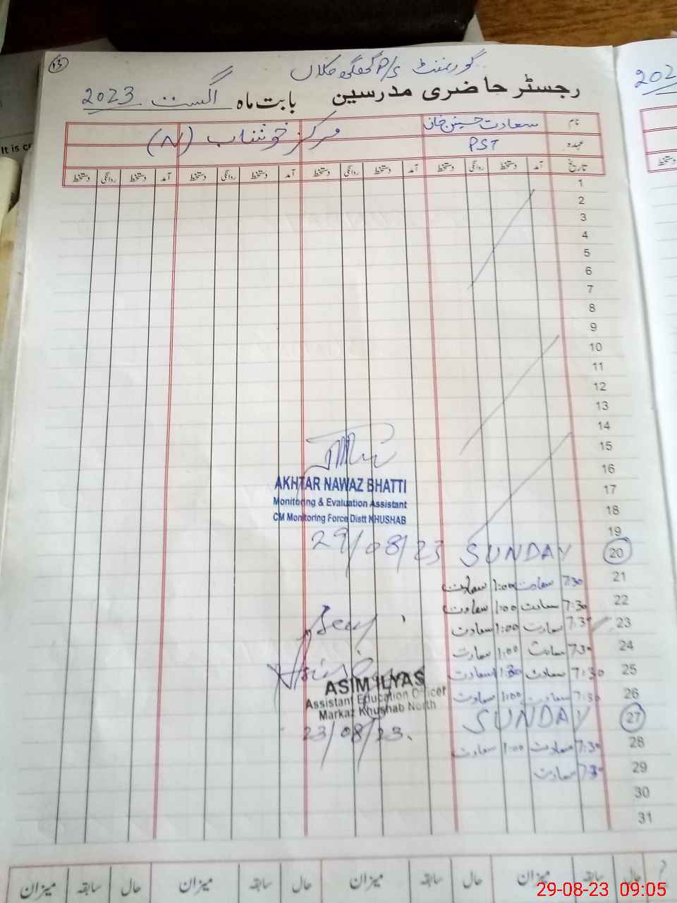 | Name: Sa**** Ba**** Designation: (School Headmaster's/Headmistress's) PST Phone/Cell Number: 03**** |