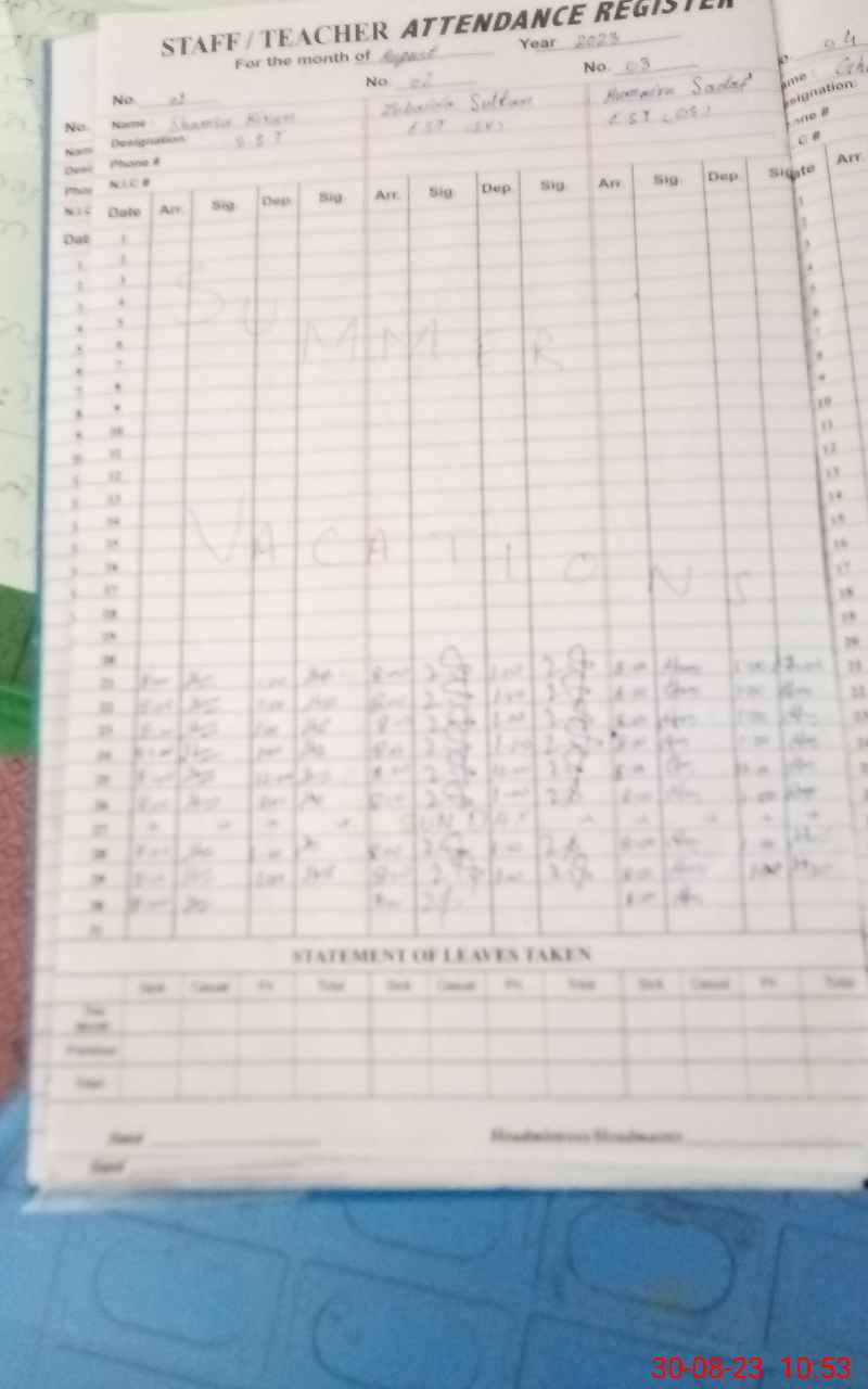 | Name: SH**** KI**** Designation: (School Headmaster's/Headmistress's) SST Phone/Cell Number: 03**** |