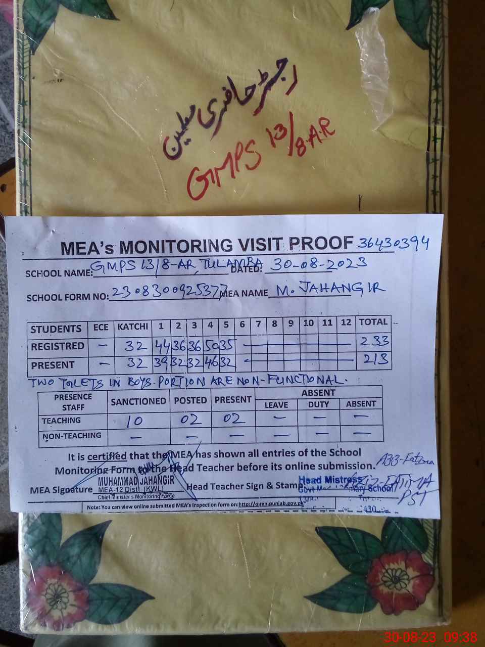 | EMIS Code: 36430394 | Name of School: GMPS 13/8-AR, P/O 20/8-R, TULAMBA | |||