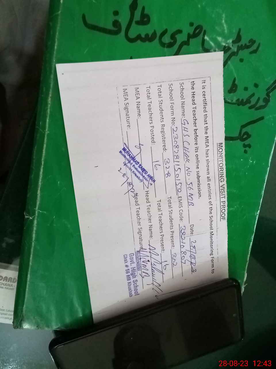 | EMIS Code: 38210807 | Name of School: GHS CHAK NO. 56 MB | |||
