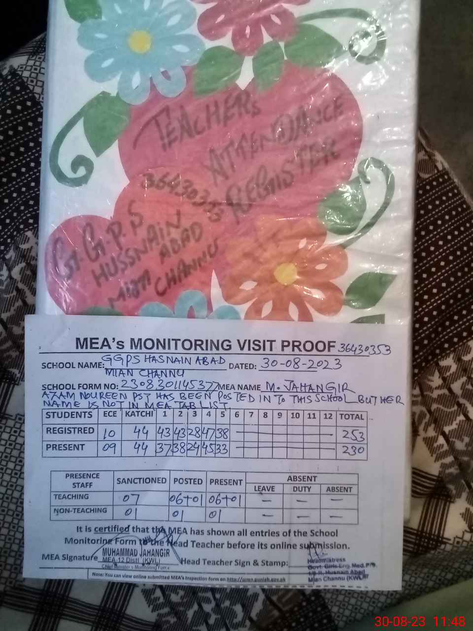 | Attendance Register | Head Teacher | MEA with School | Visit Proof |