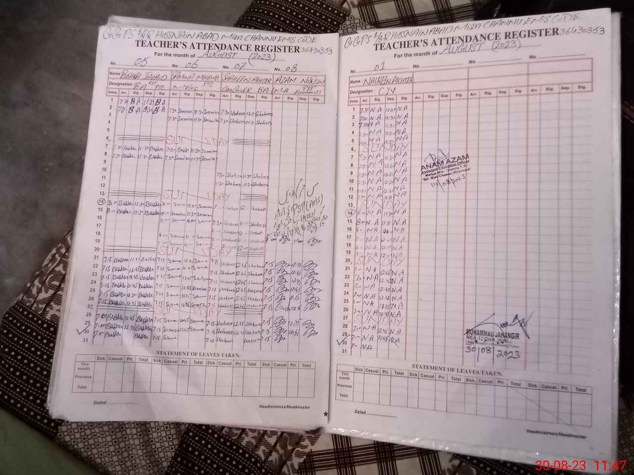 | Name: Ha**** Uz**** Ra**** Designation: (School Headmaster's/Headmistress's) PST Phone/Cell Number: 03**** |