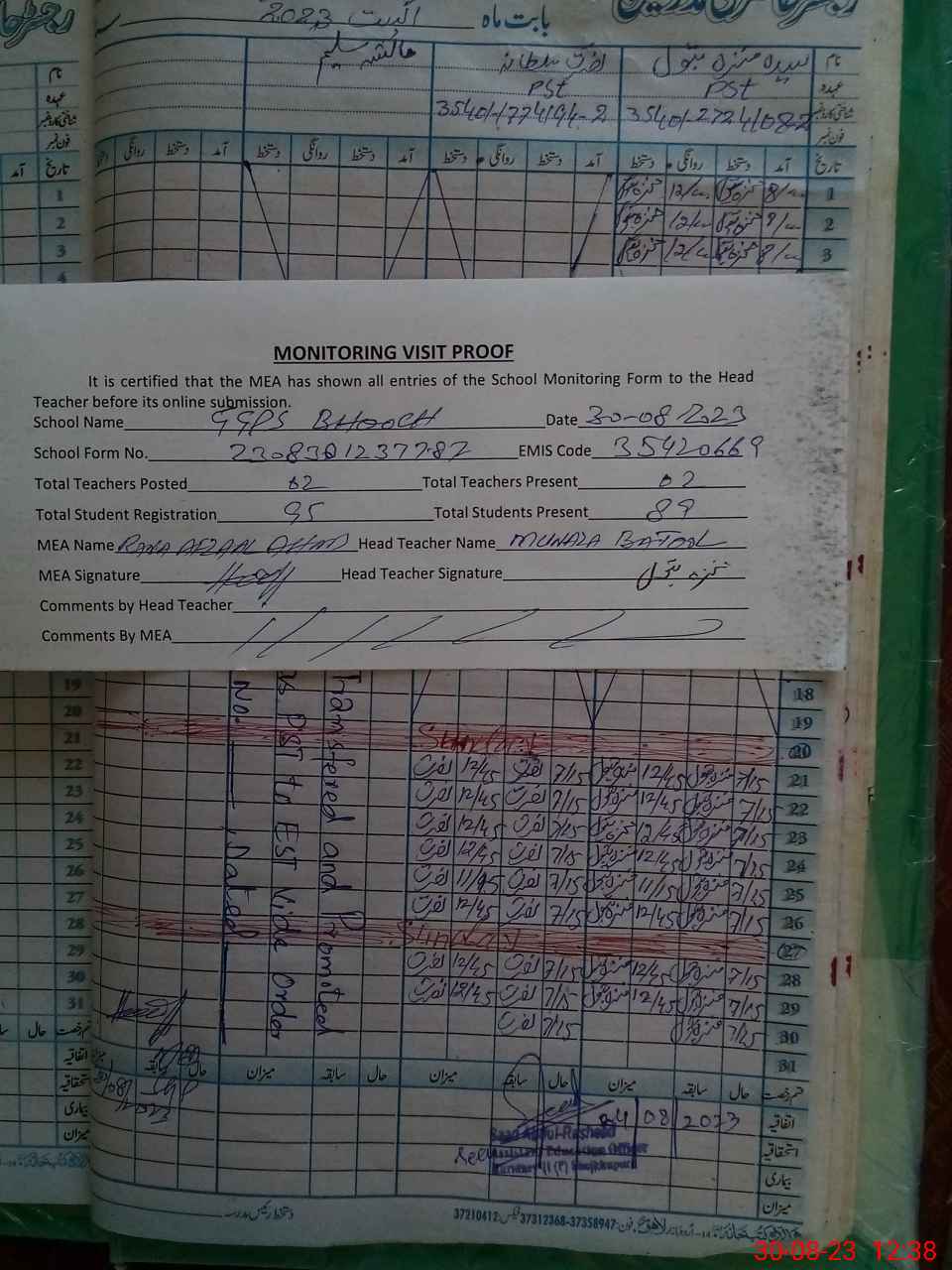| Name: NU**** SU**** Designation: (School Headmaster's/Headmistress's) PST Phone/Cell Number: 03**** |