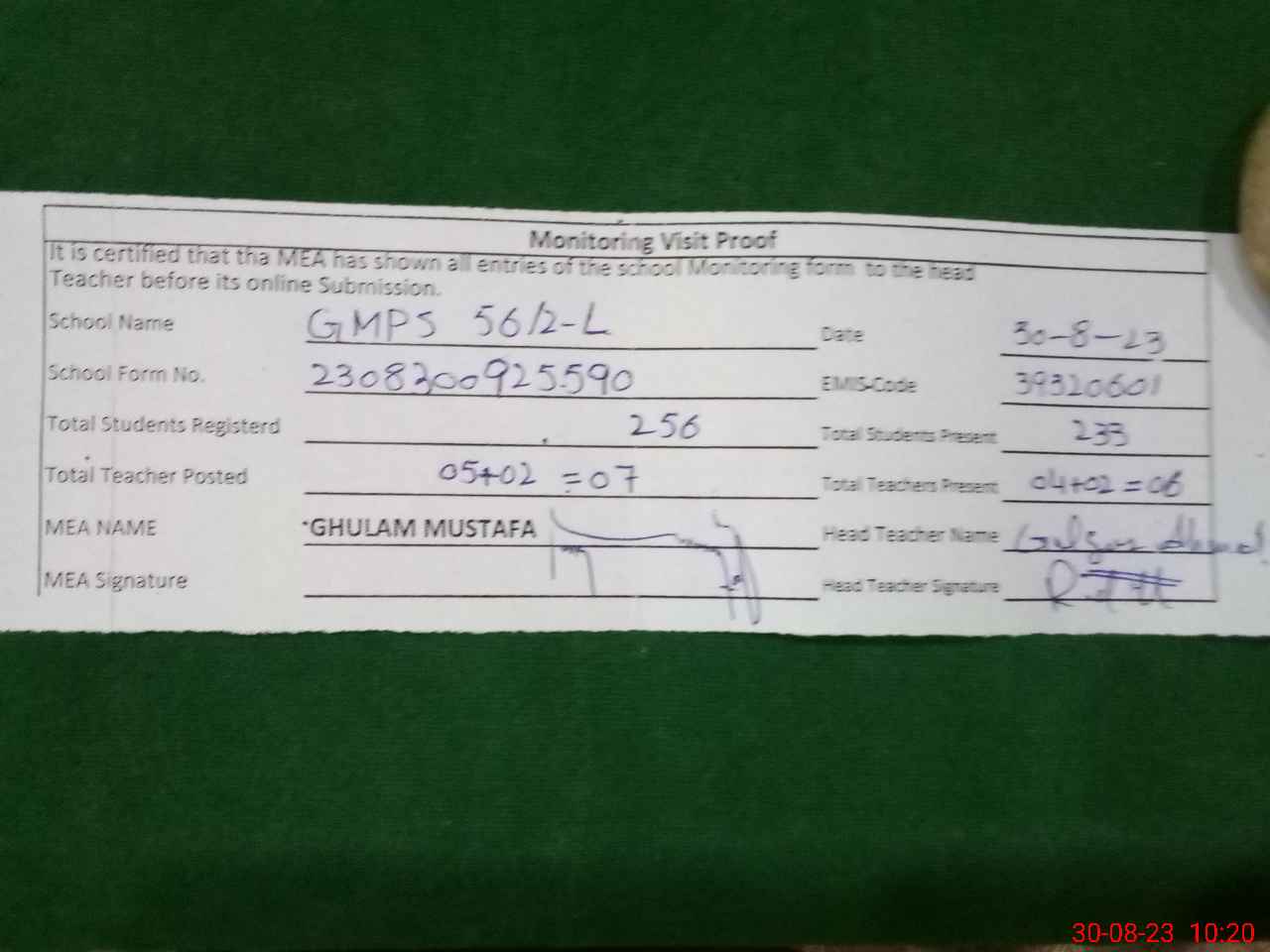 | Total no. of Classrooms: 9 No. of Classrooms Used for Teaching: 7 No. of Classrooms Storing Old Furniture, FTBs, etc: 0Comments if Any: Aeo not visited in the month of June 23 Following 02 teachers are on the posting strength and are present on duty but their names not added in the list of school teaching staff Kindly add the names accordingly Hina Younas PST Ghazala Siddiq |
