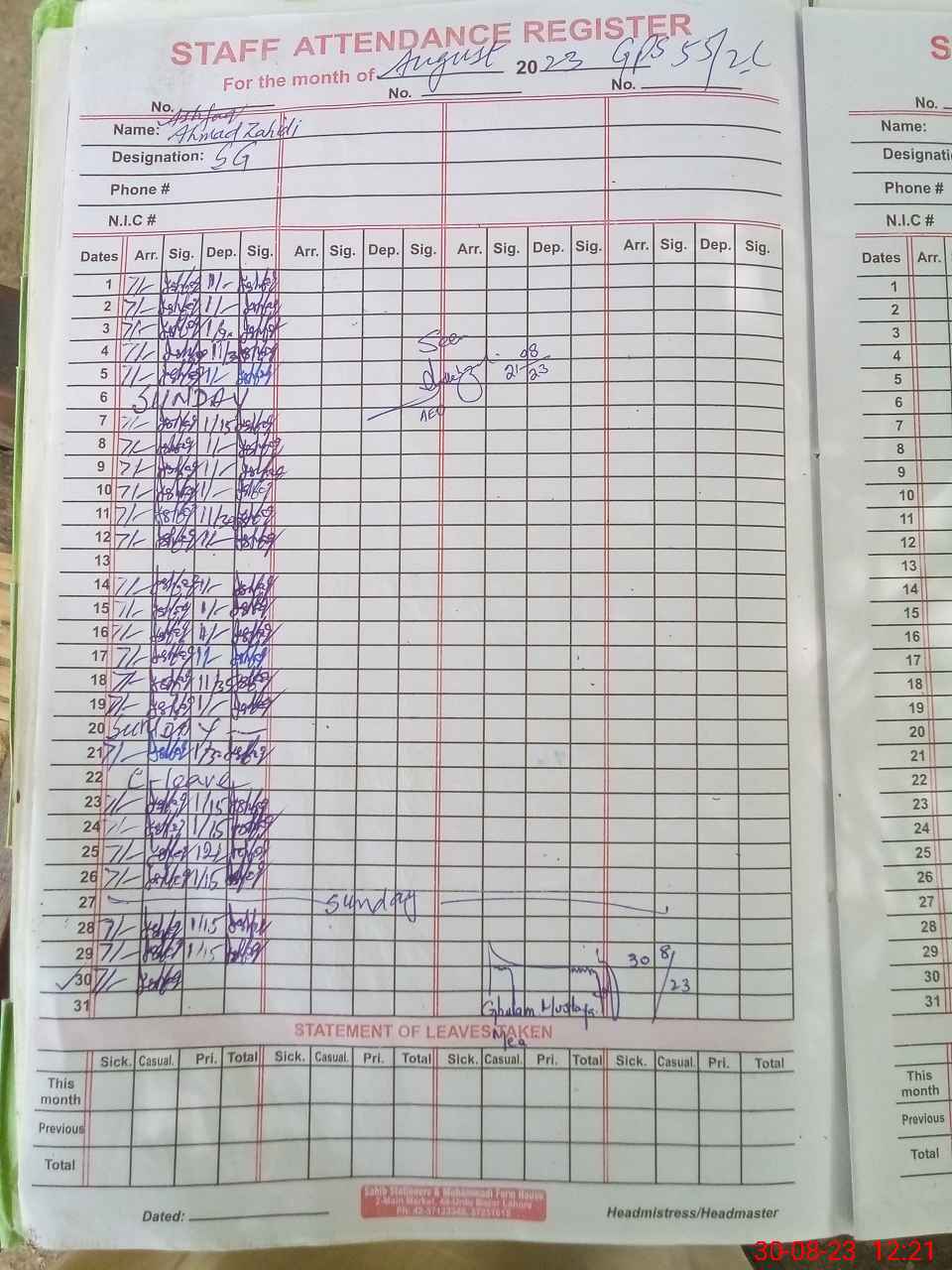 | Name: Sa**** Na**** Designation: (School Headmaster's/Headmistress's) PST Phone/Cell Number: 03**** |