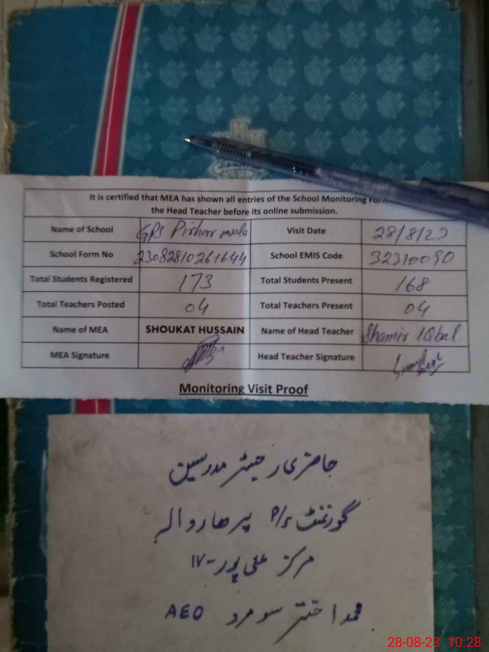 | EMIS Code: 32310090 | Name of School: GPS PIRHAR WALA | |||