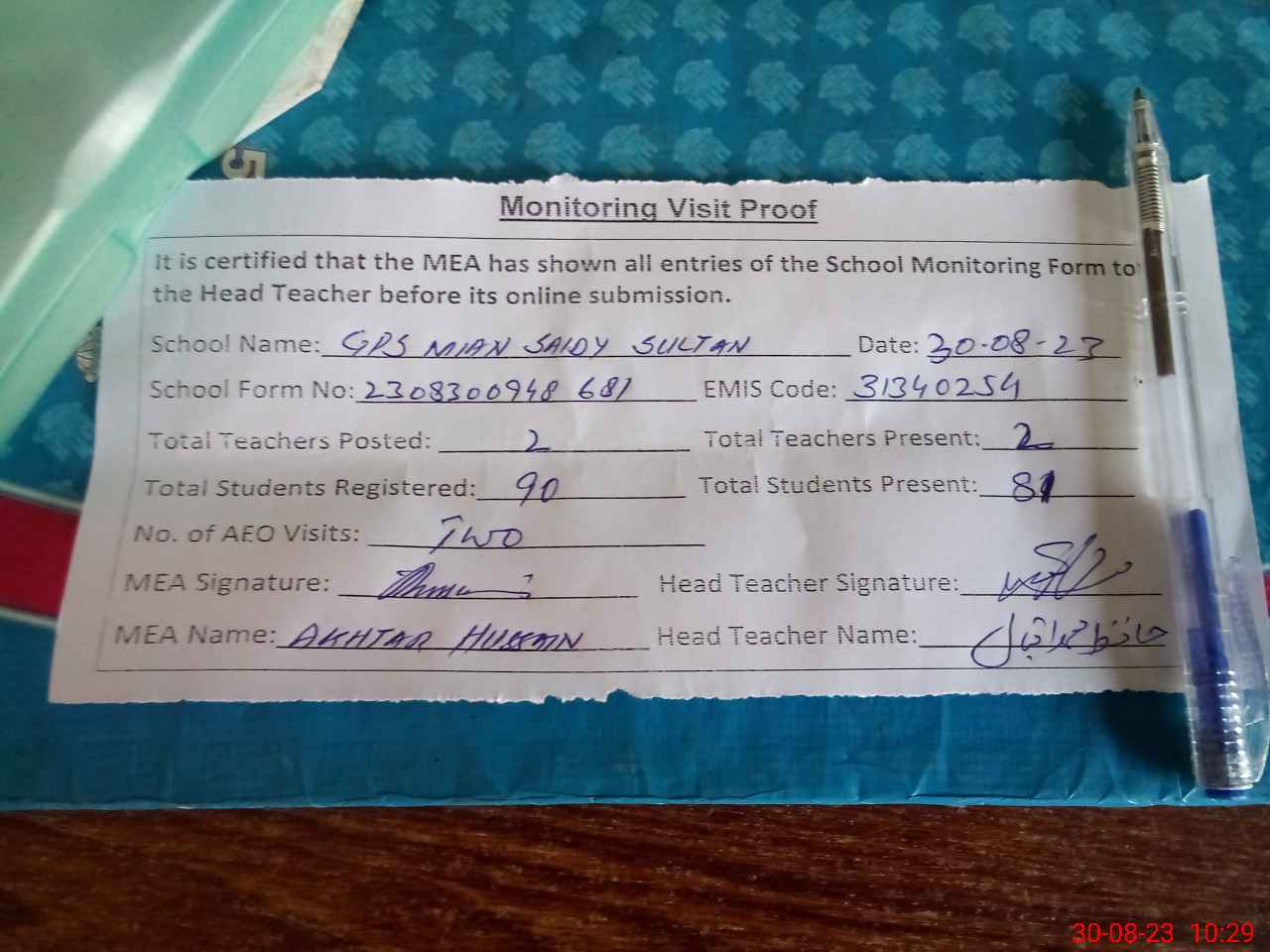 | EMIS Code: 31340254 | Name of School: GPS MIANS SAIDY SULTAN | |||