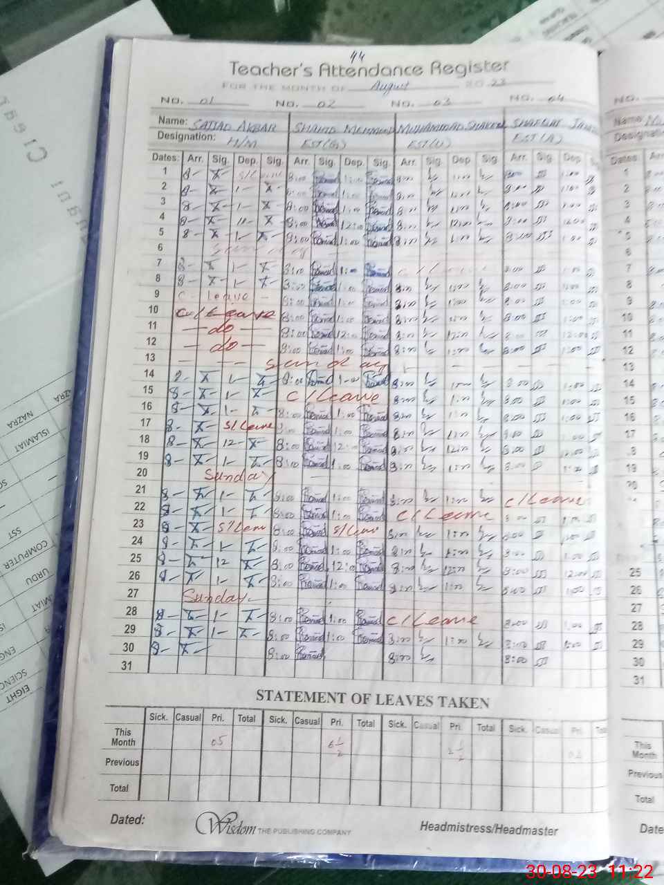 | Leave | Duty | Absent | Maternity | Medical | Ex- Pak |