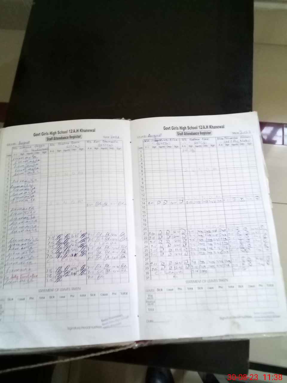 | Leave | Duty | Absent | Maternity | Medical | Ex- Pak |