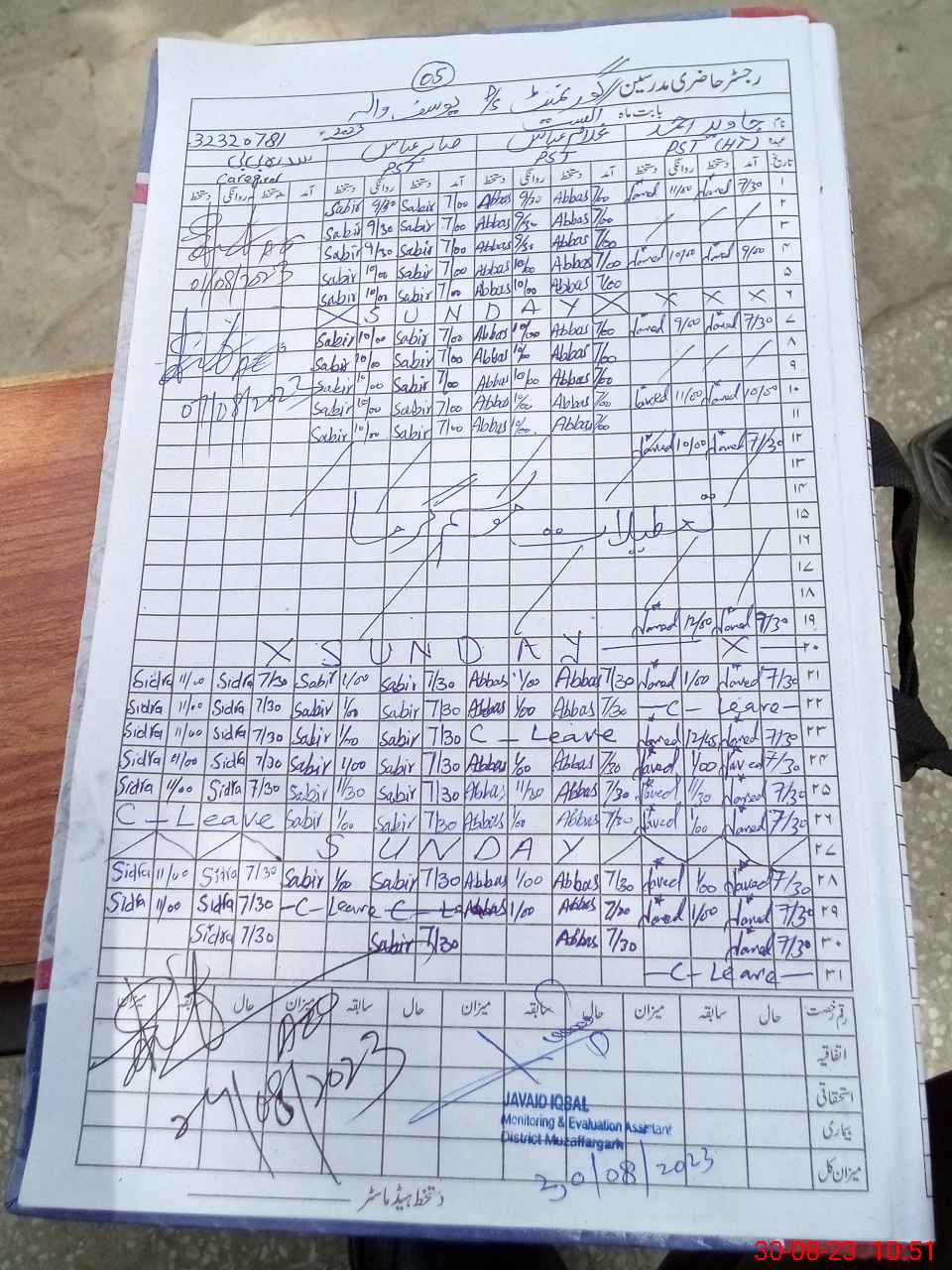 | CNIC | Full Name | Designation | R/C | Absence During Last Calender Month |
