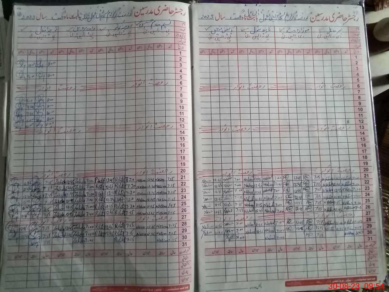 | CNIC | Full Name | Designation | R/C | Absence During Last Calender Month |
