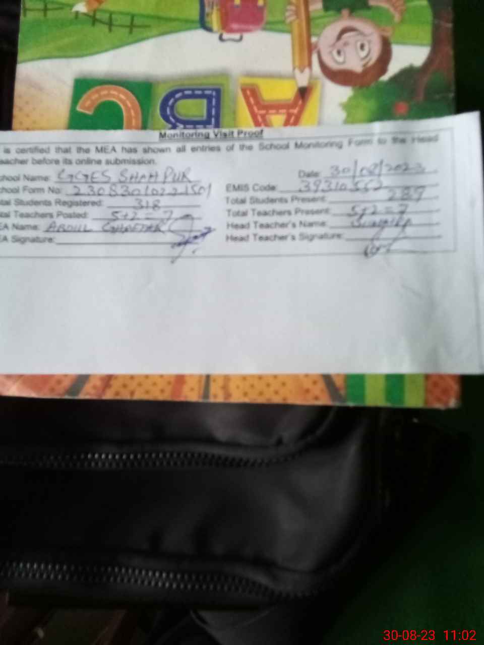 | Attendance Register | Head Teacher | MEA with School | Visit Proof |
