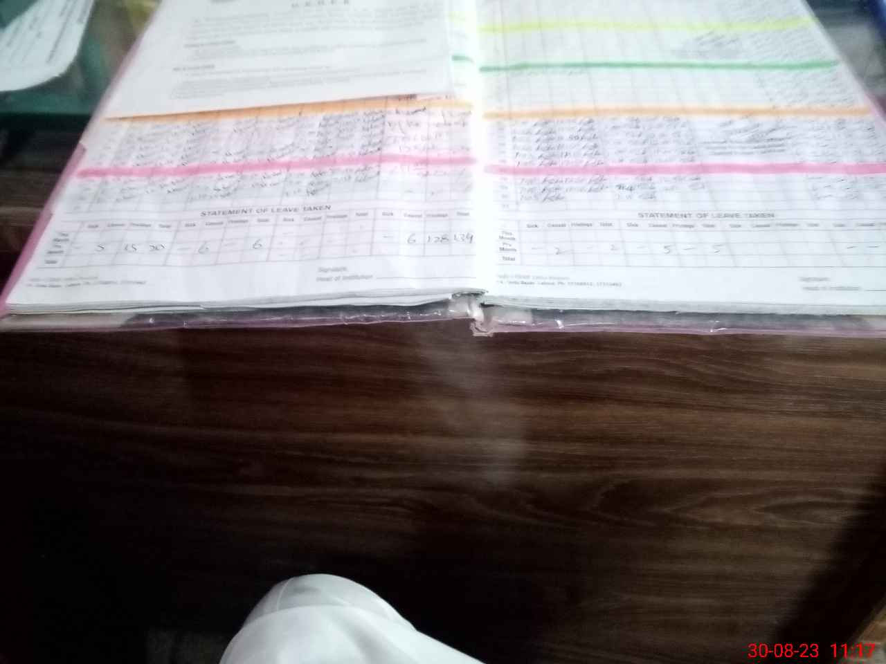 | CNIC | Full Name | Designation | R/C | Absence During Last Calender Month |