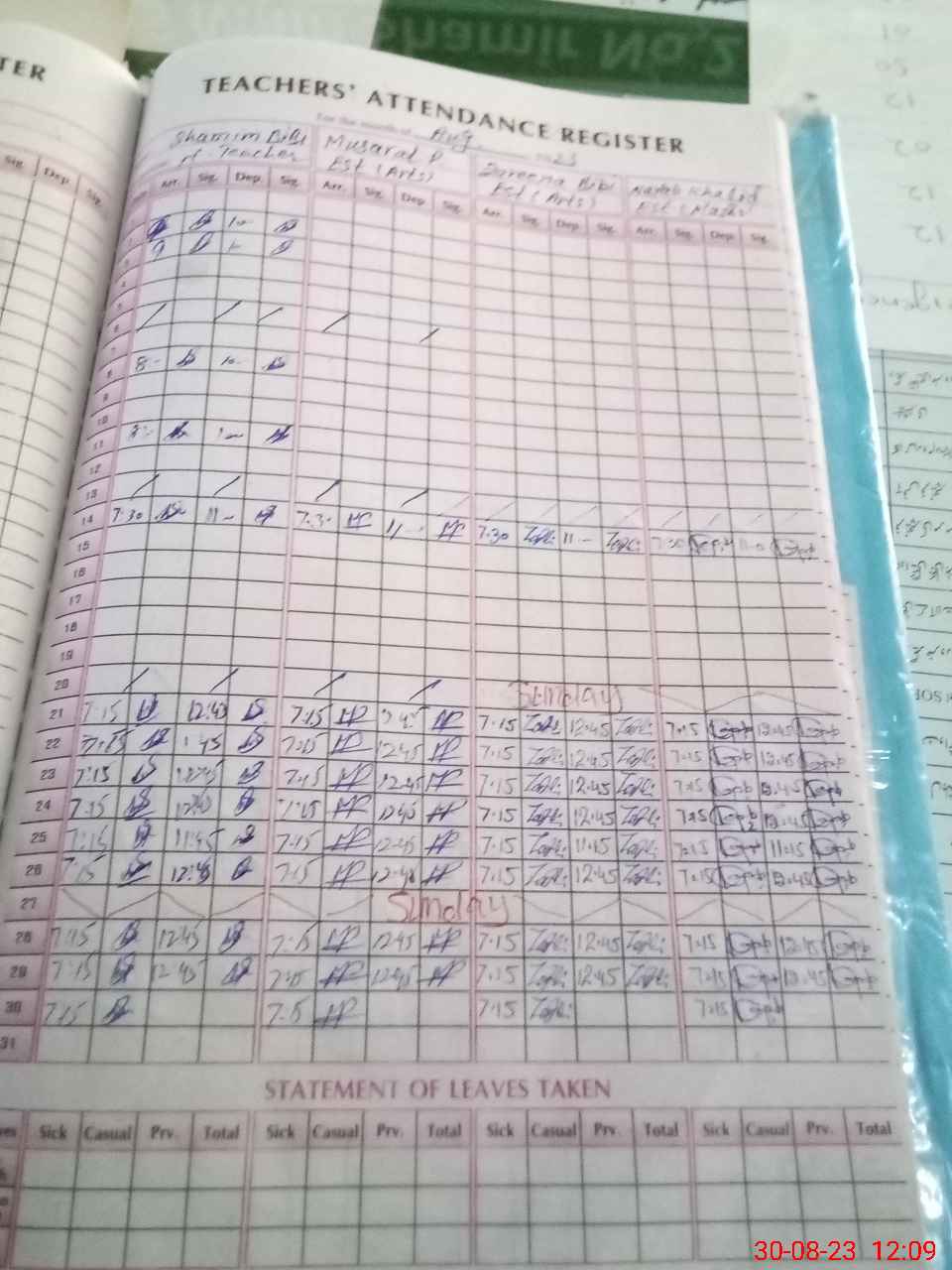| Leave | Duty | Absent | Maternity | Medical | Ex- Pak |