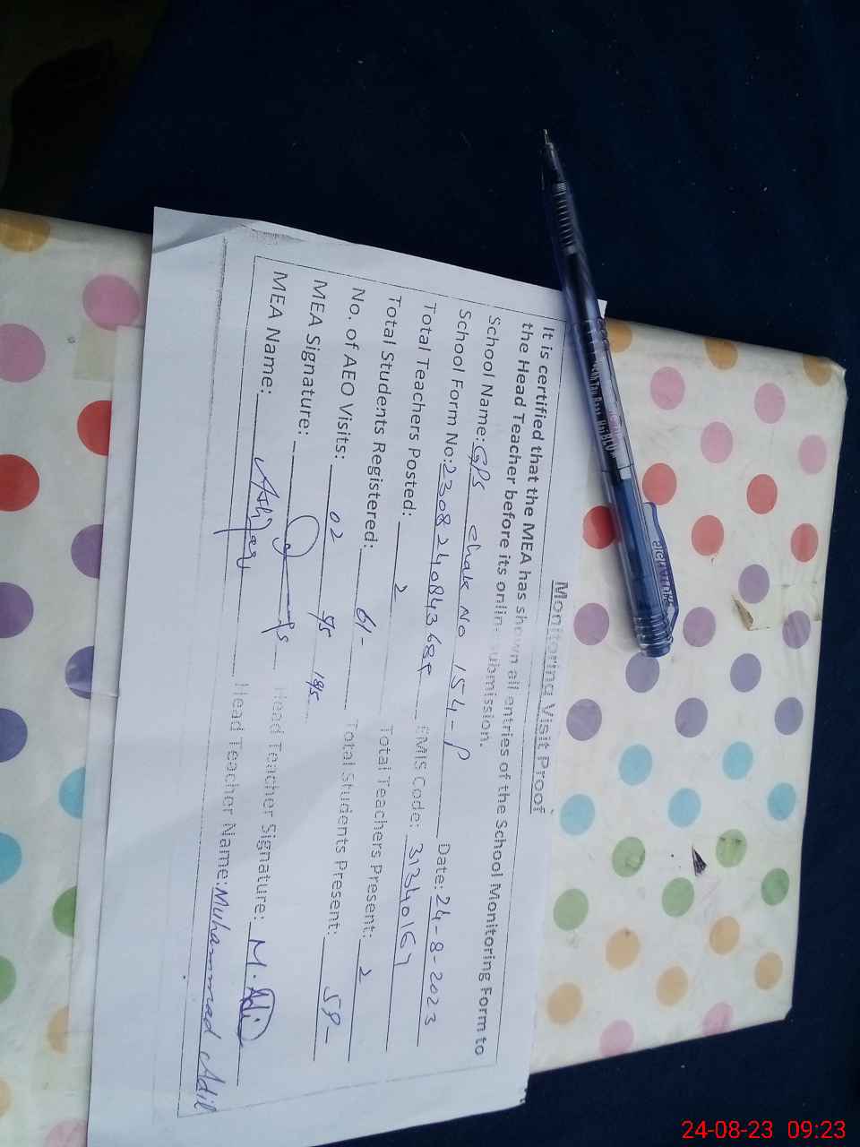 | EMIS Code: 31340167 | Name of School: GPS CHAK NO 154/P | |||