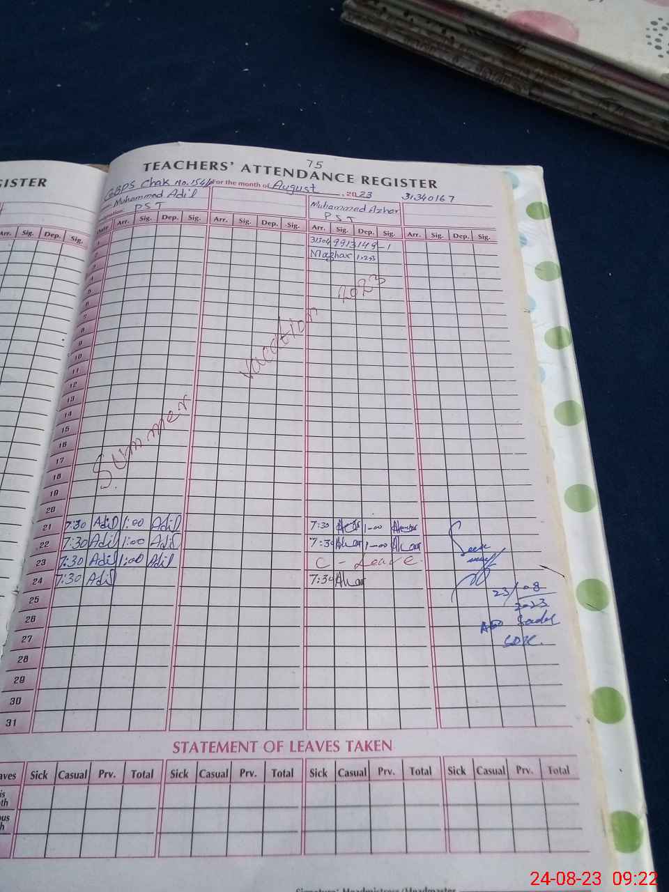 | Name: Mu**** Ad**** Designation: (School Headmaster's/Headmistress's) Pst Phone/Cell Number: 03**** |