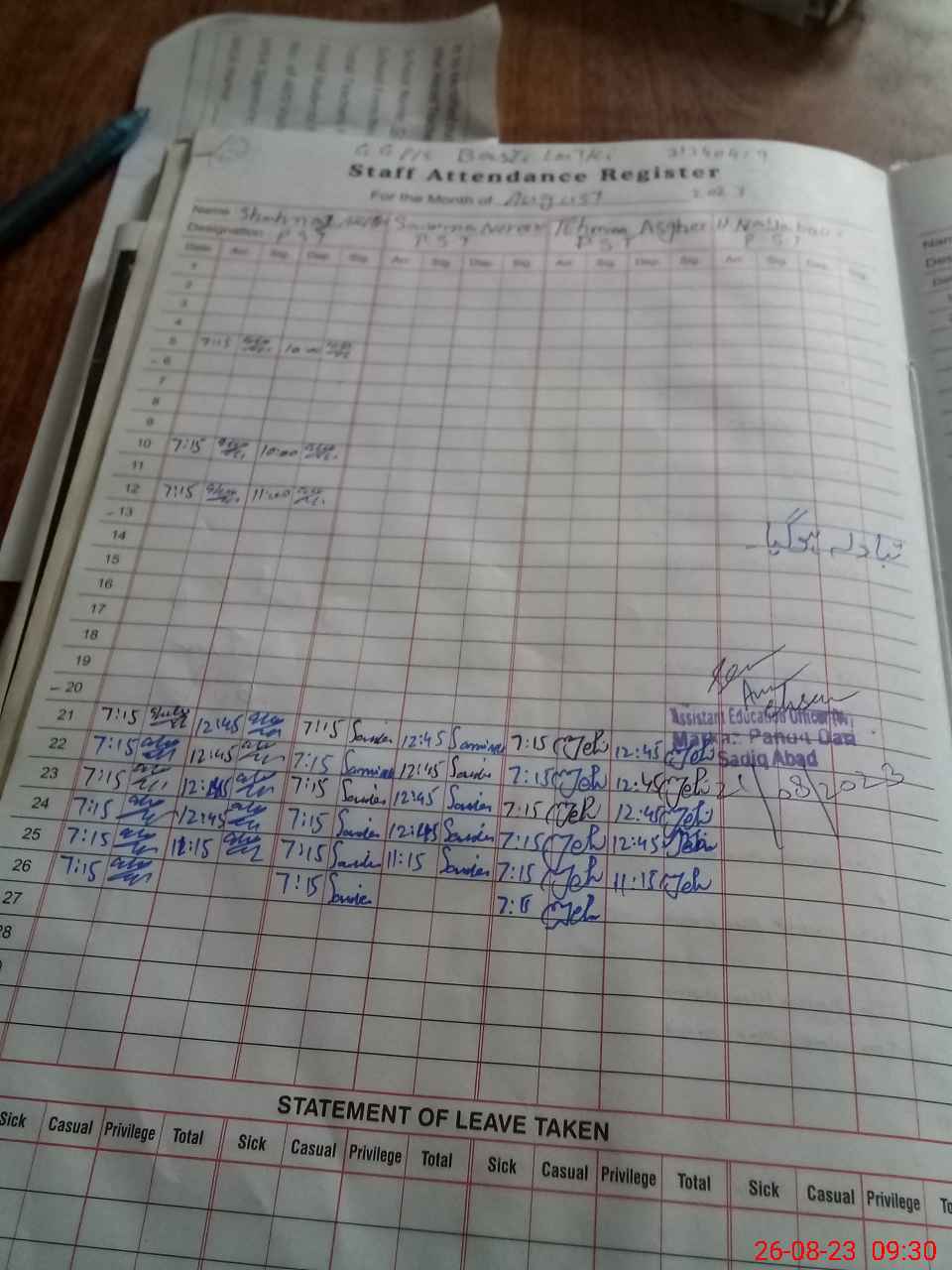 | Name: Sa**** No**** Designation: (School Headmaster's/Headmistress's) PST Phone/Cell Number: 03**** |