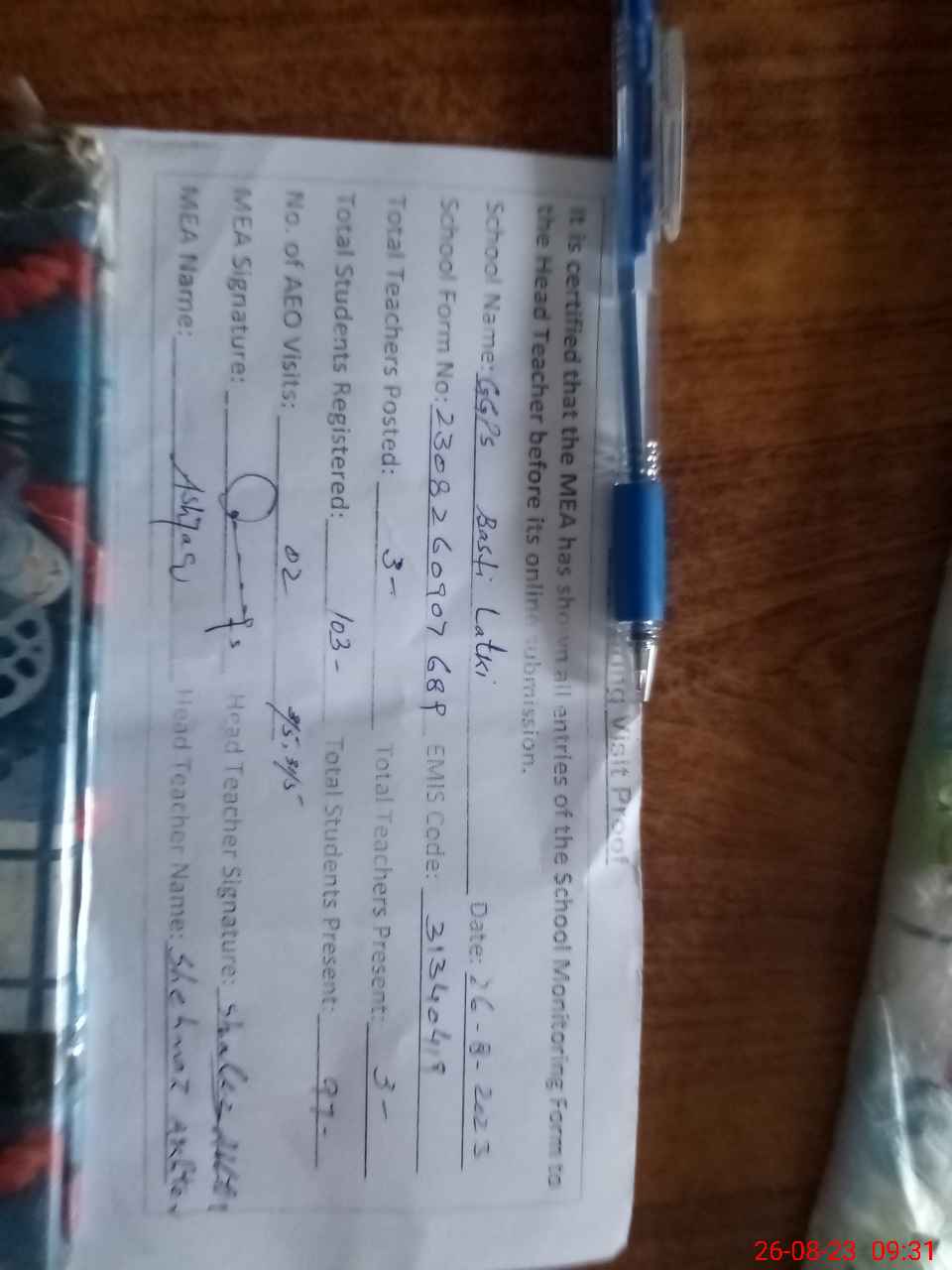 | EMIS Code: 31340419 | Name of School: GGPS LATKI | |||