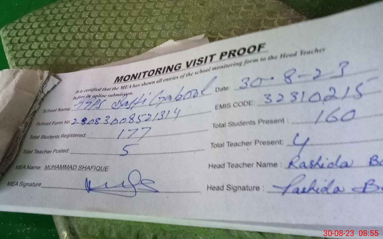 | Attendance Register | Head Teacher | MEA with School | Visit Proof |