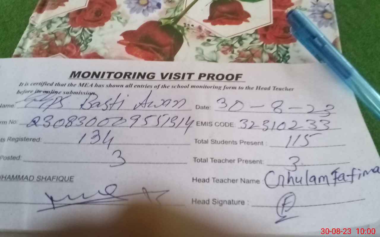 | EMIS Code: 32310233 | Name of School: GGPS BASTI AWAN | |||