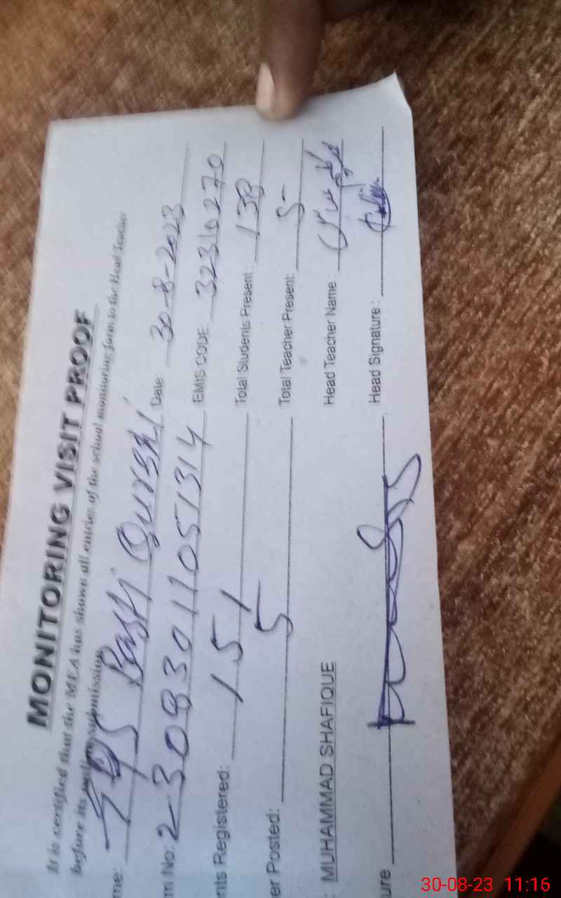 | EMIS Code: 32310270 | Name of School: GPS BASTI QURESHI | |||