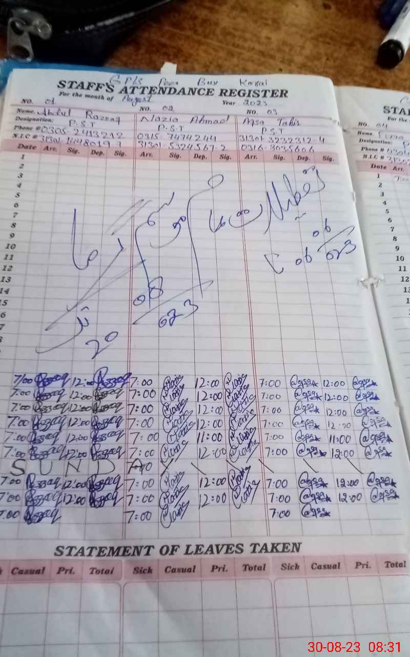 | Name: Ab**** Ra**** Designation: (School Headmaster's/Headmistress's) PST Phone/Cell Number: 03**** |