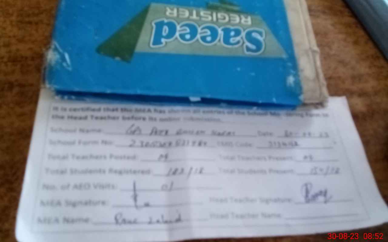 | EMIS Code: 31310162 | Name of School: GPS PEER BUX KORAI (After Noon) | |||