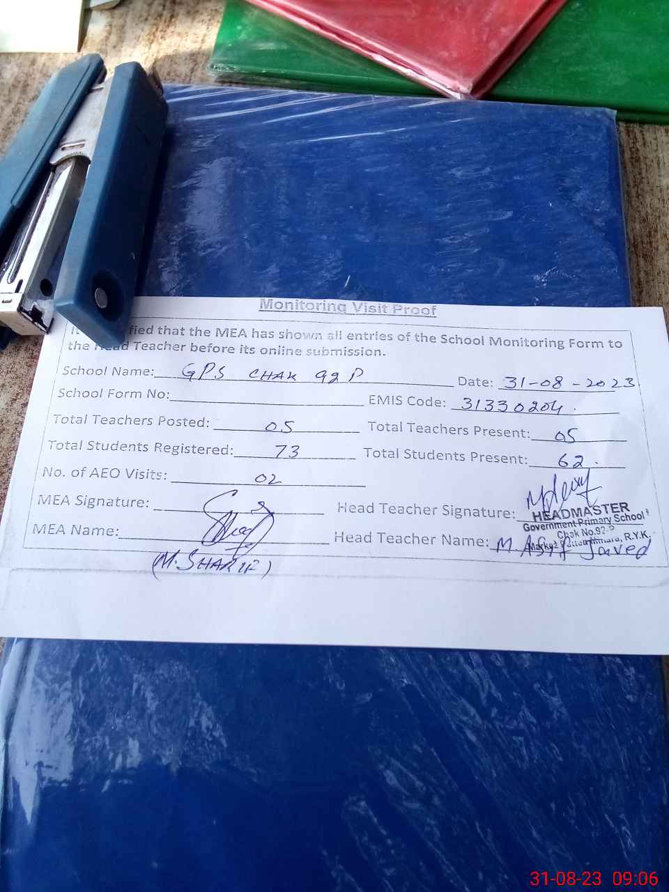 | EMIS Code: 31330204 | Name of School: GPS CHAK NO 92 P | |||