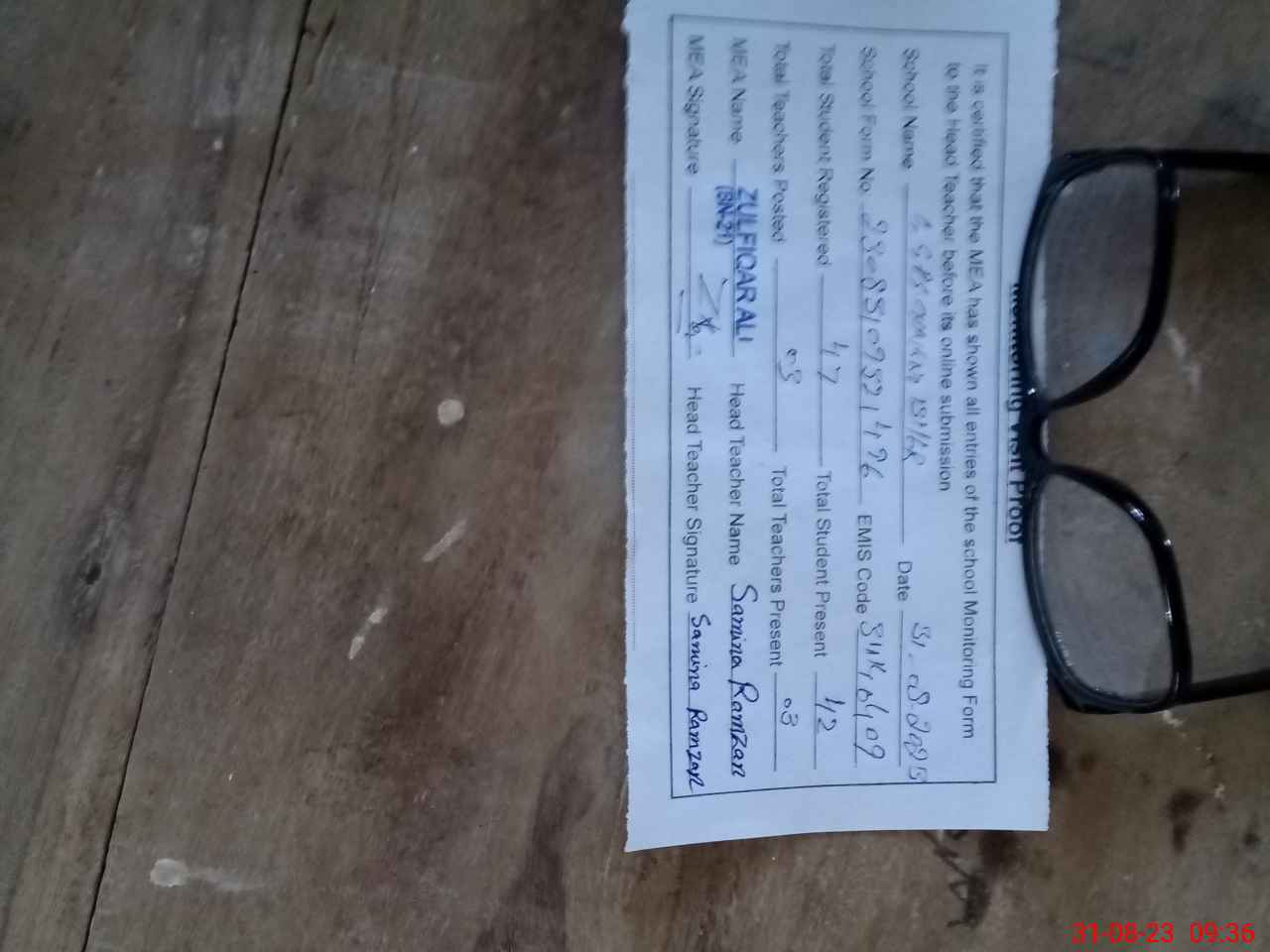 | Attendance Register | Head Teacher | MEA with School | Visit Proof |