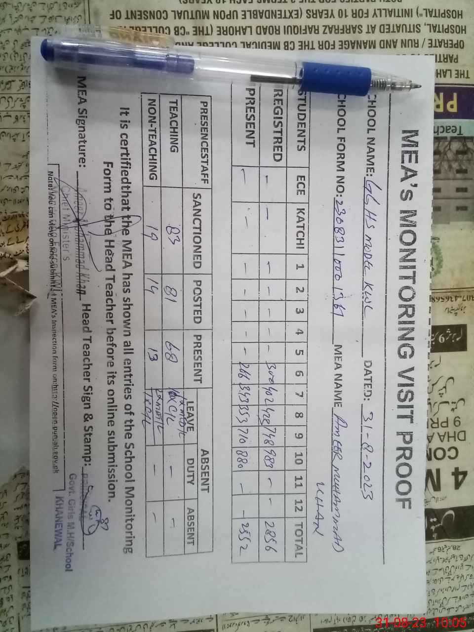| Monitoring Date: 31-08-2023 | Start Time: 31-08-2023 08:36 AM | End Time: 31-08-2023 10:08 AM | Name of MEA: Am**** Mu**** Kh**** | |