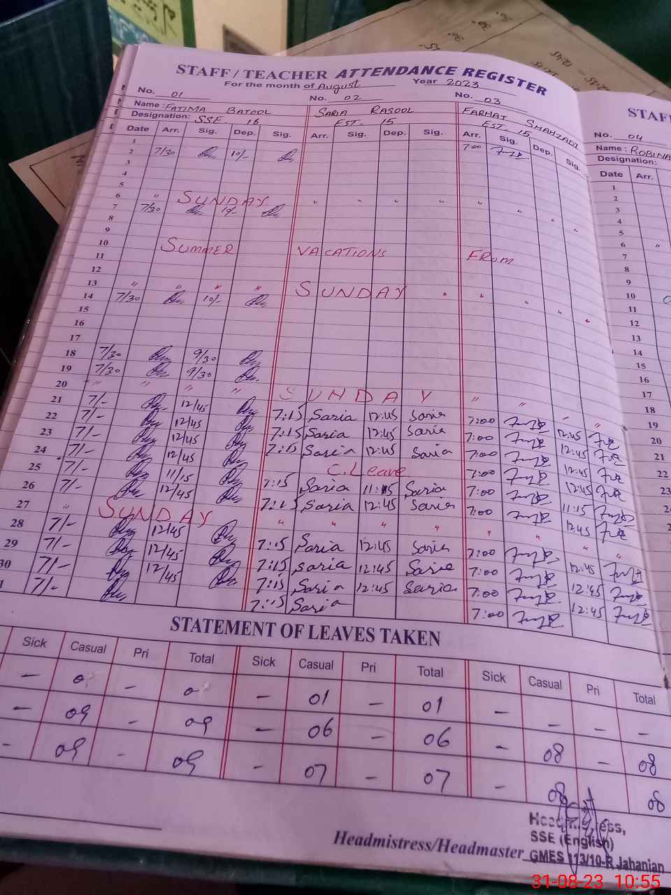 | Attendance Register | Head Teacher | MEA with School | Visit Proof |