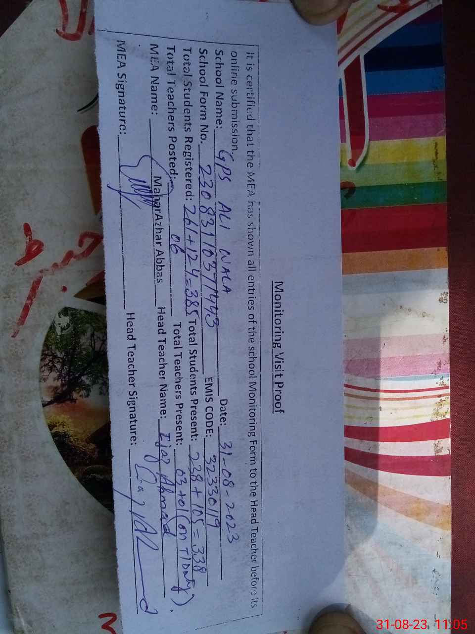 | EMIS Code: 32330119 | Name of School: GPS ALI WALA | |||