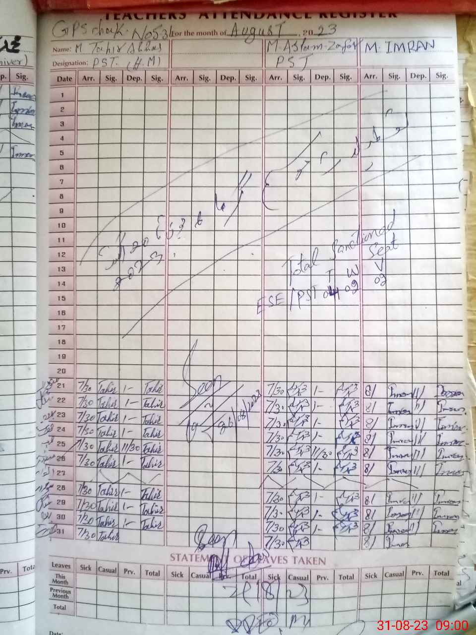 | Name: MTA**** AB**** Designation: (School Headmaster's/Headmistress's) PST Phone/Cell Number: 03**** |