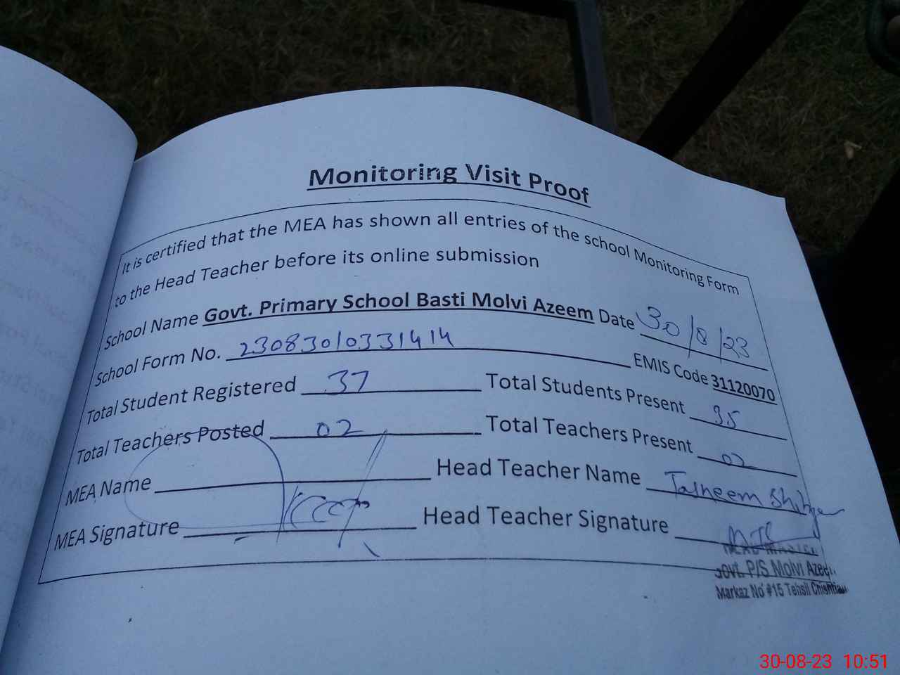 | EMIS Code: 31120070 | Name of School: GPS BASTI MOLVI AZEEM | |||