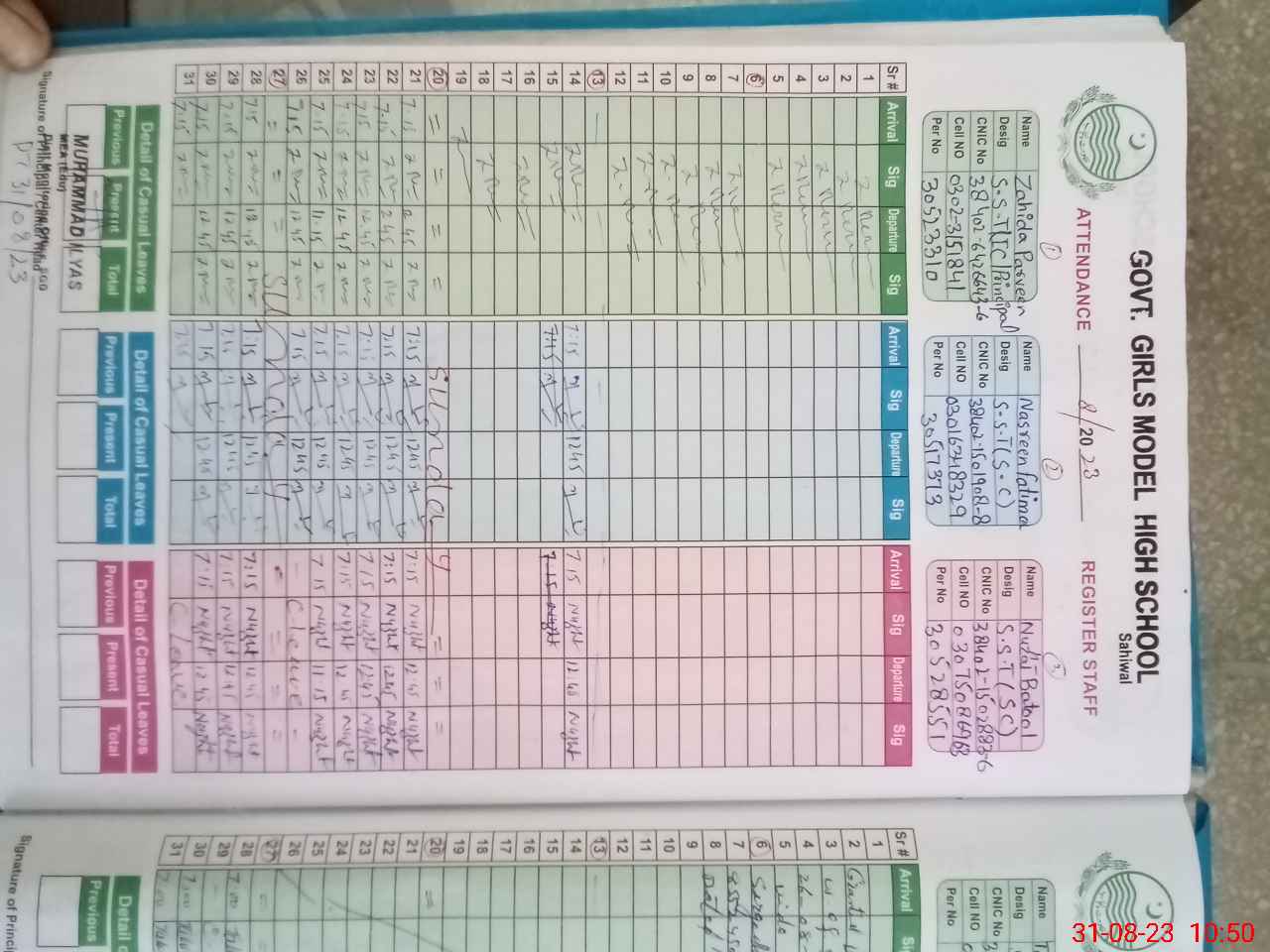 | CNIC | Full Name | Designation | R/C | Absence During Last Calender Month |