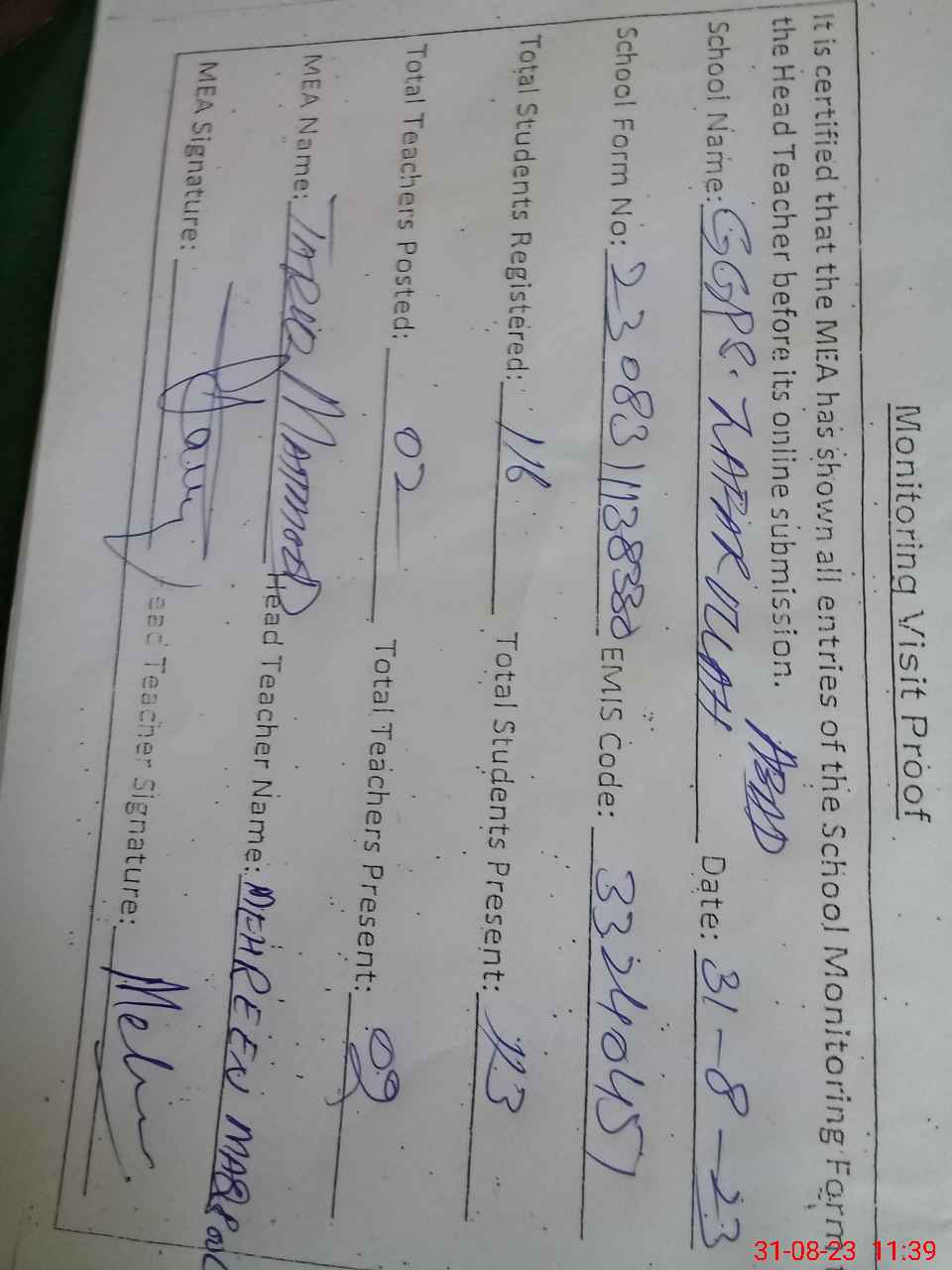 | EMIS Code: 33240451 | Name of School: GGPS ZAFARULA ABAD | |||