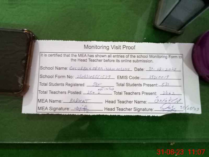 | EMIS Code: 39210019 | Name of School: GHS URBAN AREA ISLAM COLONY | |||