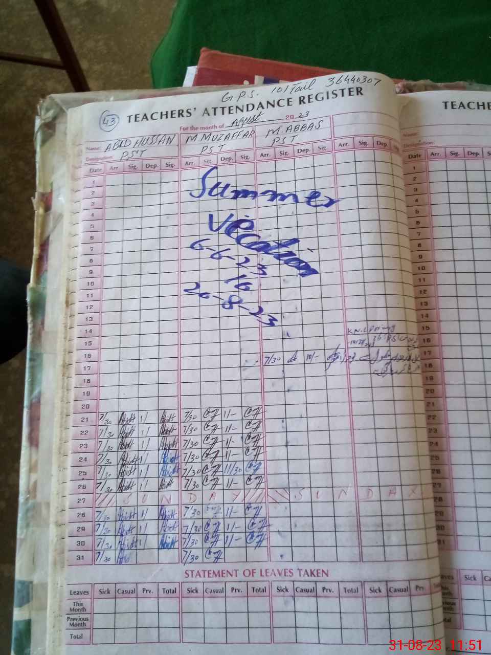 | Name: Ab**** Hu**** Wa**** Designation: (School Headmaster's/Headmistress's) PST Phone/Cell Number: 03**** |