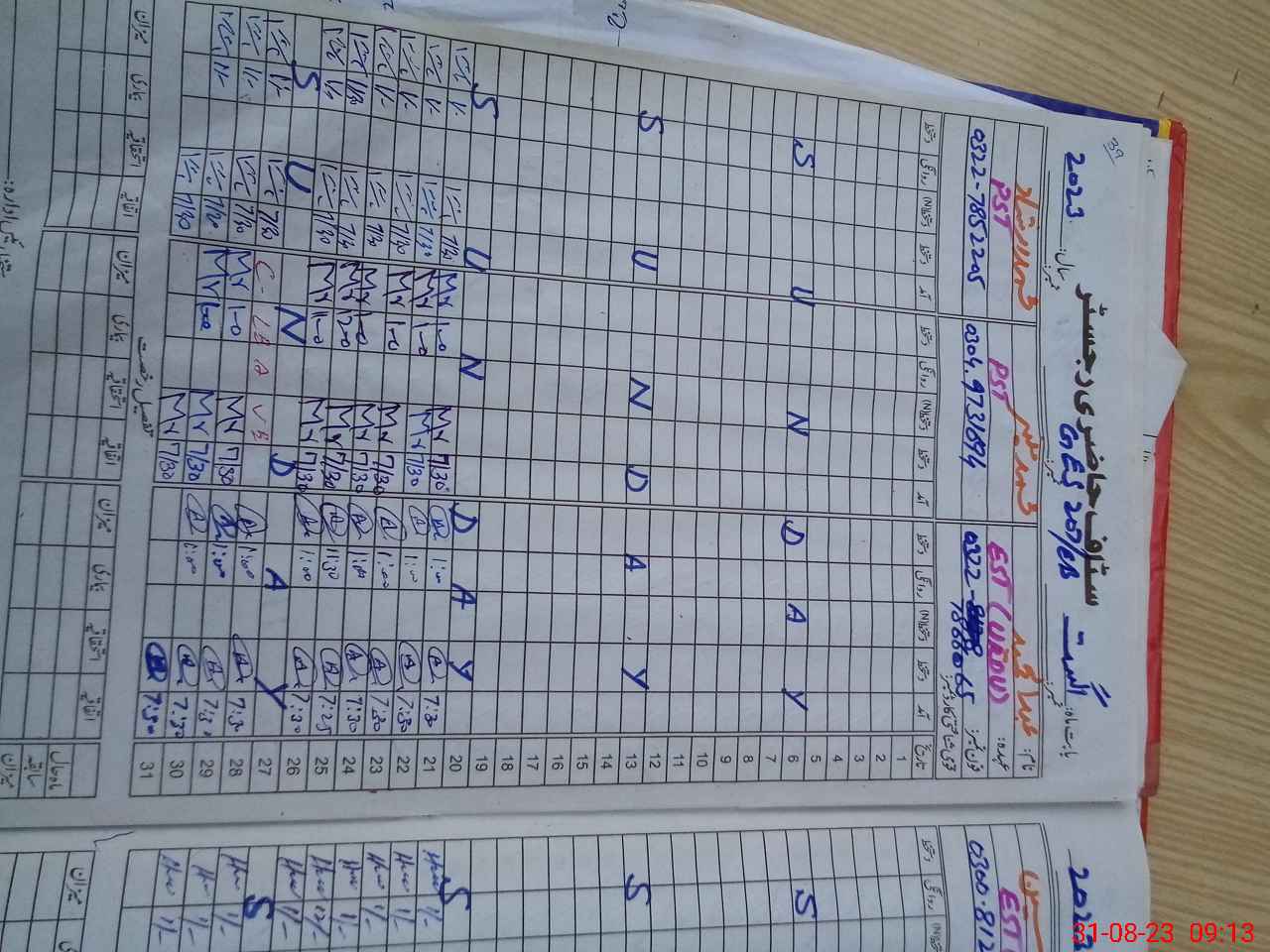 | CNIC | Full Name | Designation | R/C | Absence During Last Calender Month |