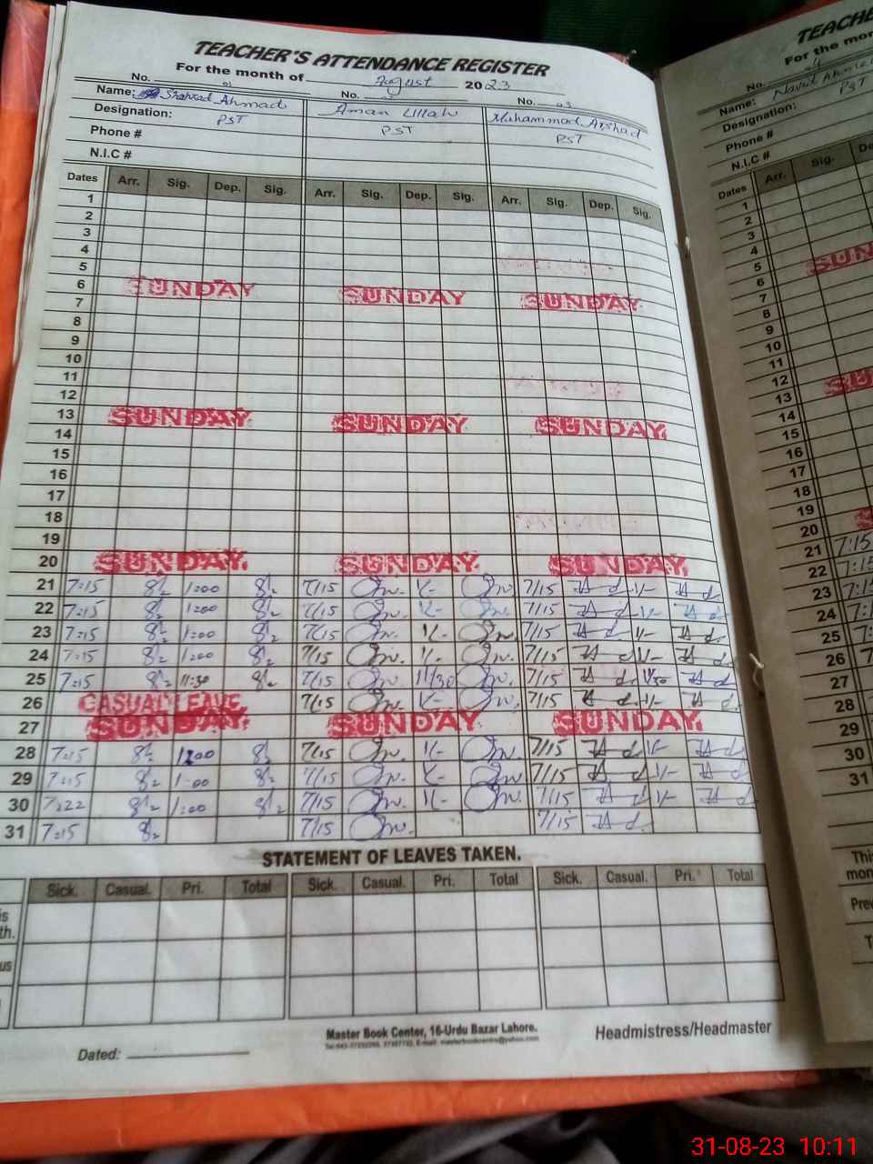 | Name: Na**** Ah**** Designation: (School Headmaster's/Headmistress's) PST Phone/Cell Number: 03**** |