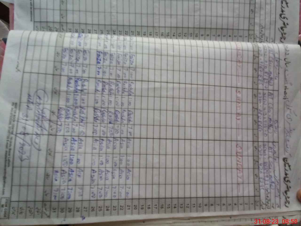 | CNIC | Full Name | Designation | R/C | Absence During Last Calender Month |