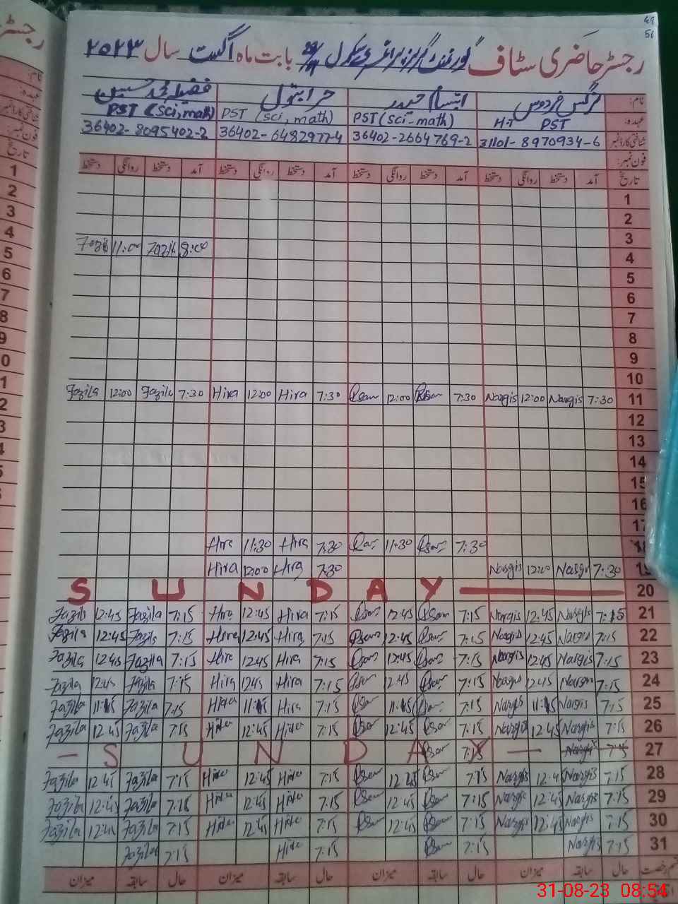 | CNIC | Full Name | Designation | R/C | Absence During Last Calender Month |