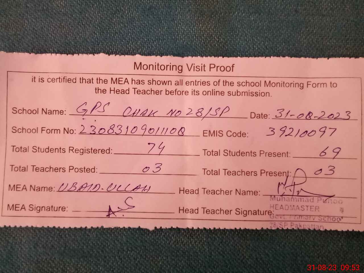 | Name: MU**** PU**** Designation: (School Headmaster's/Headmistress's) PST Phone/Cell Number: 03**** |