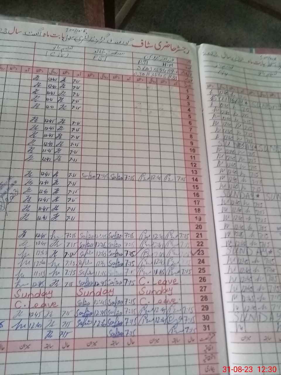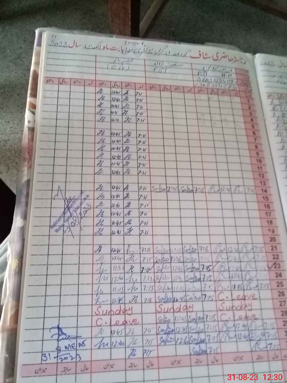 | CNIC | Full Name | Designation | R/C | Absence During Last Calender Month |