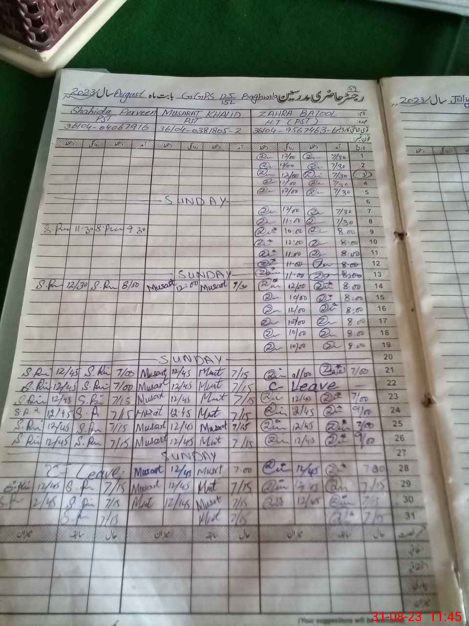 | Name: Za**** Ba**** Designation: (School Headmaster's/Headmistress's) PST Phone/Cell Number: 03**** |