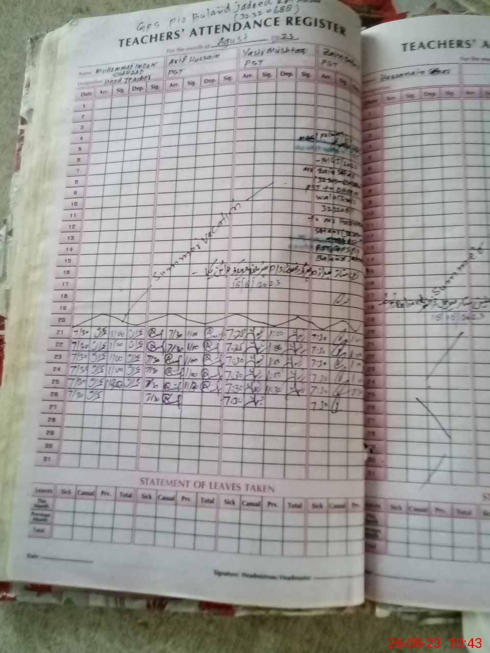 | Name: Mu**** Im**** Sh**** Designation: (School Headmaster's/Headmistress's) PST Phone/Cell Number: 03**** |