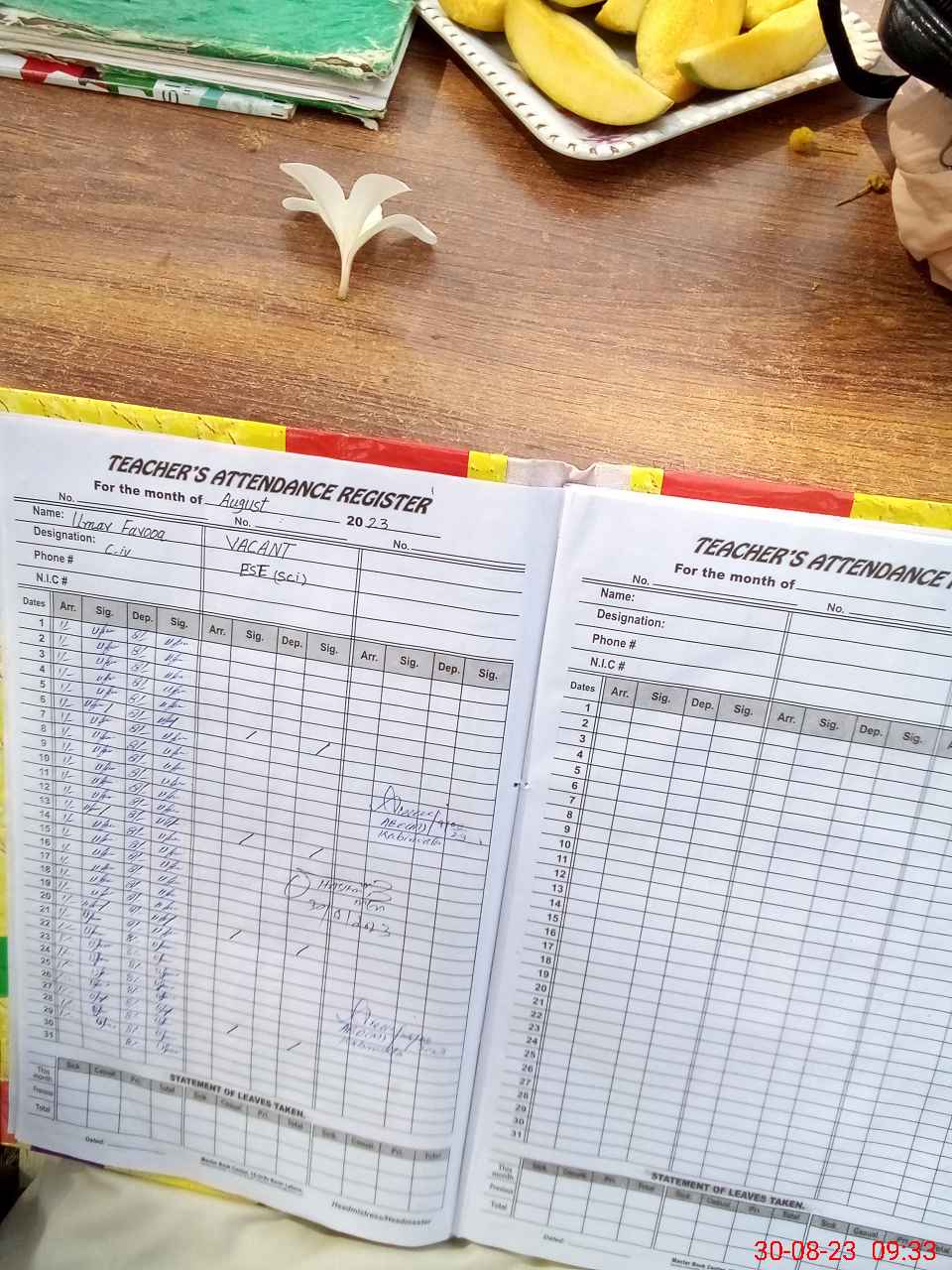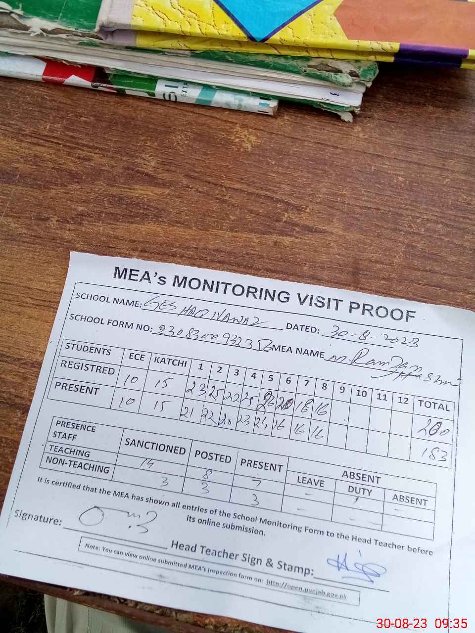 | Attendance Register | Head Teacher | MEA with School | Visit Proof |