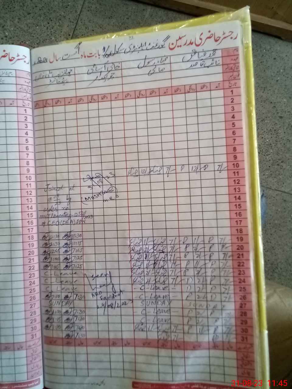 | CNIC | Full Name | Designation | R/C | Absence During Last Calender Month |