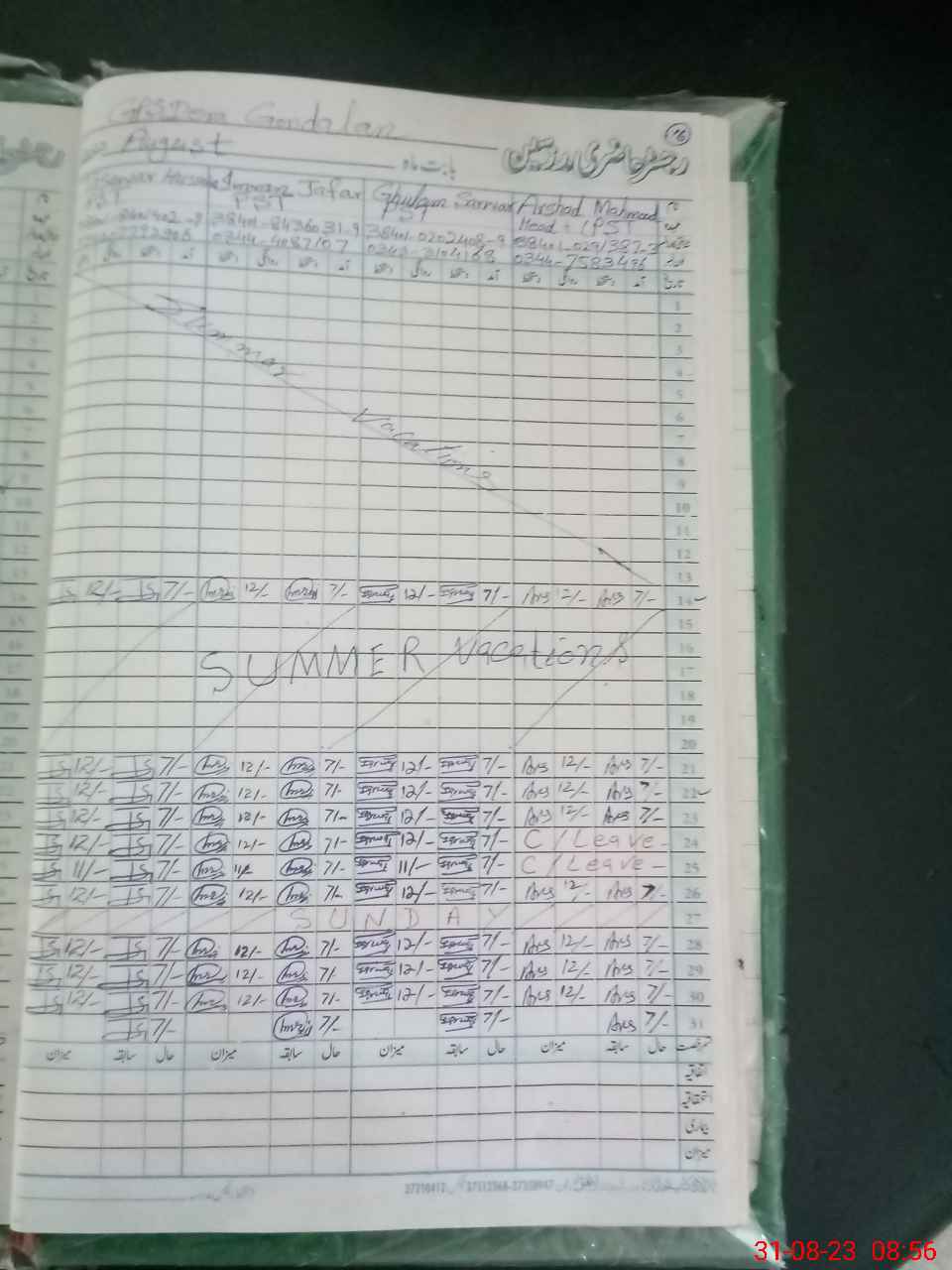 | CNIC | Full Name | Designation | R/C | Absence During Last Calender Month |